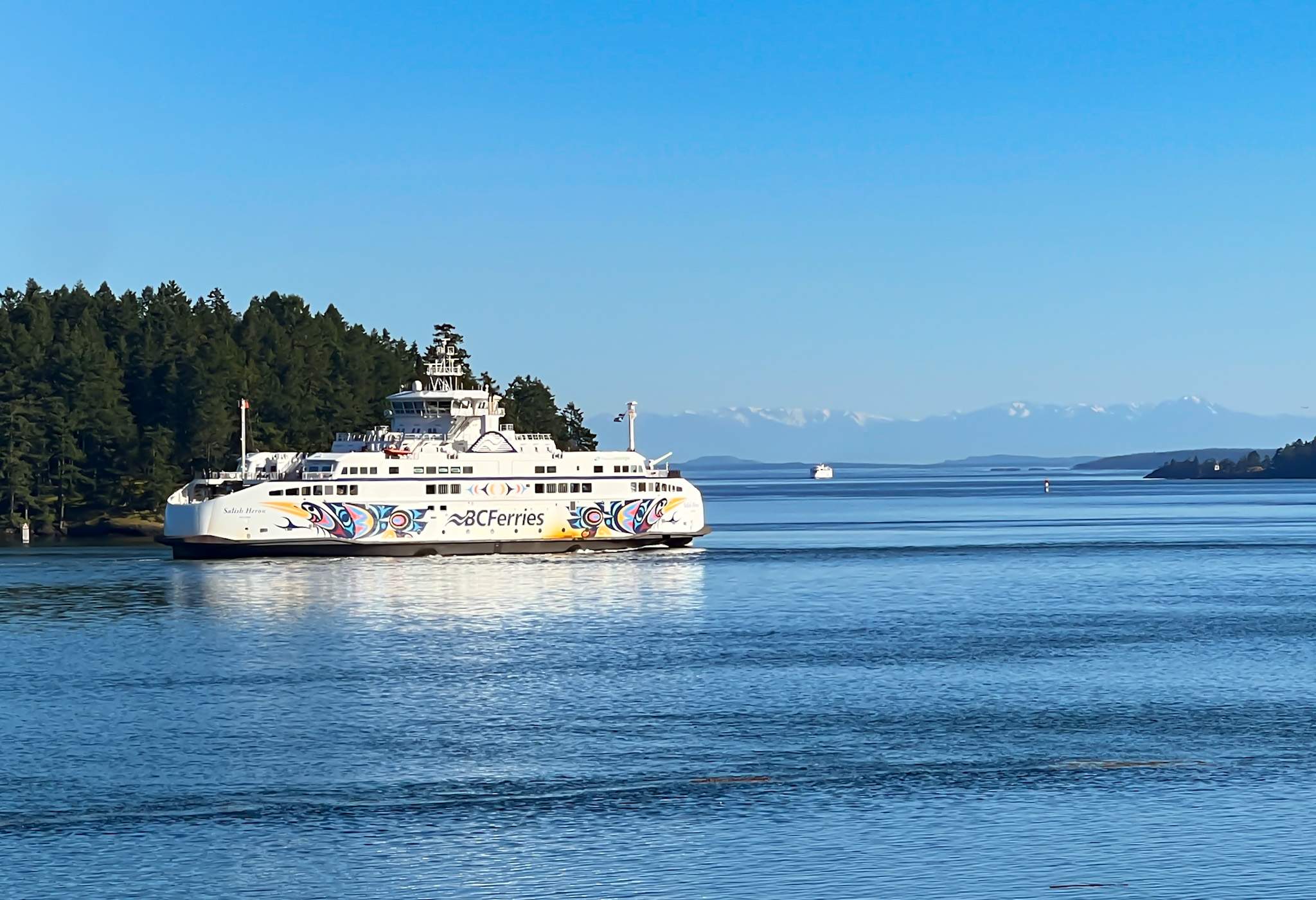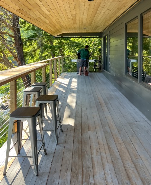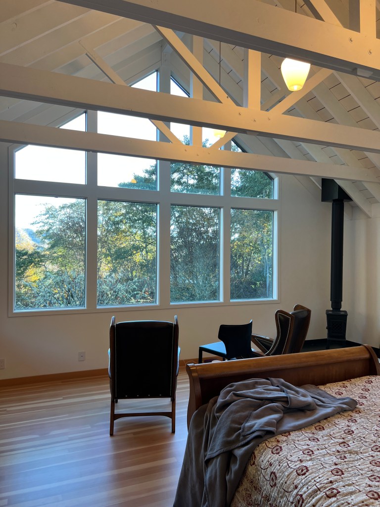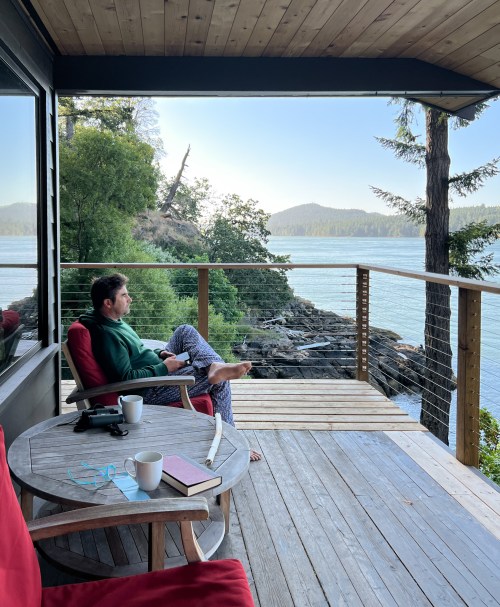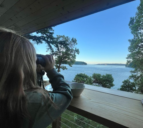 The main event is the view to the south to Active Pass and all the way to the Olympic National Park 70 miles to the south. We spent many hours enjoying the view of wildlife and boats from the covered porch.