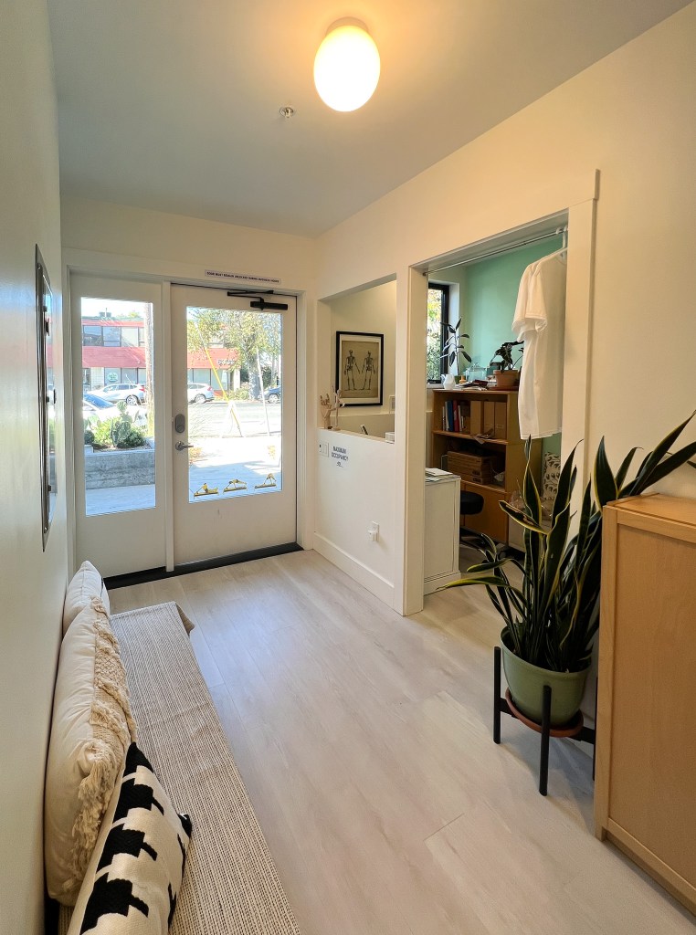 In the afternoon sunlight streams into the entry making its way deep into the studioThe main studio – radiant heat in the floor and a way beyond code heat recovery ventilation system that keeps the air really clean during flu season and wildfire season.