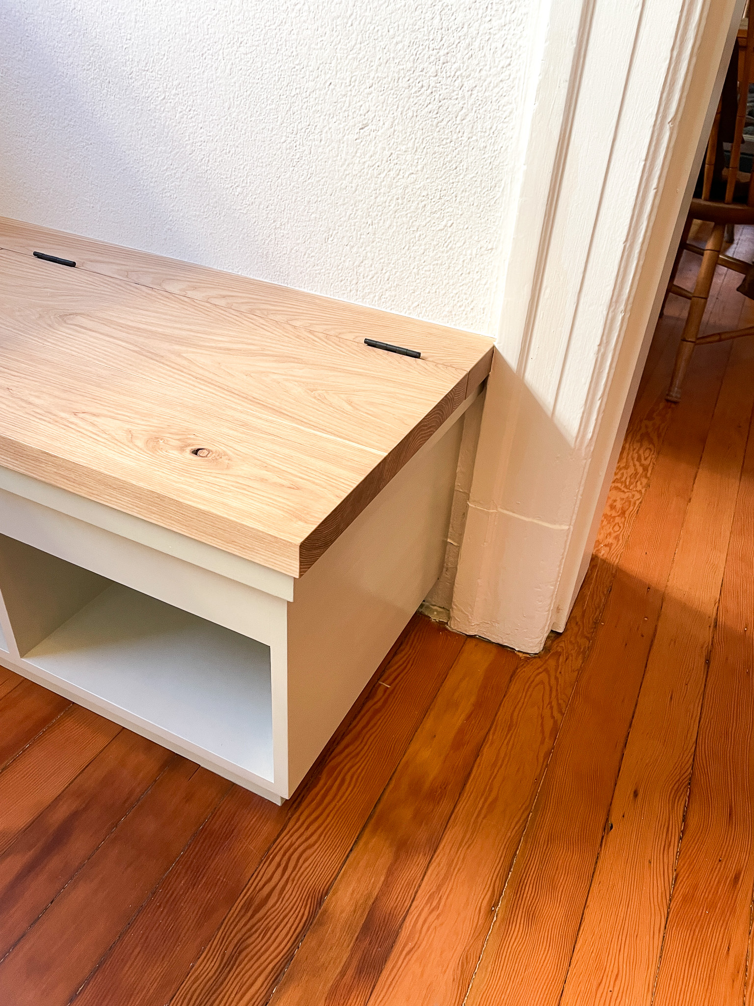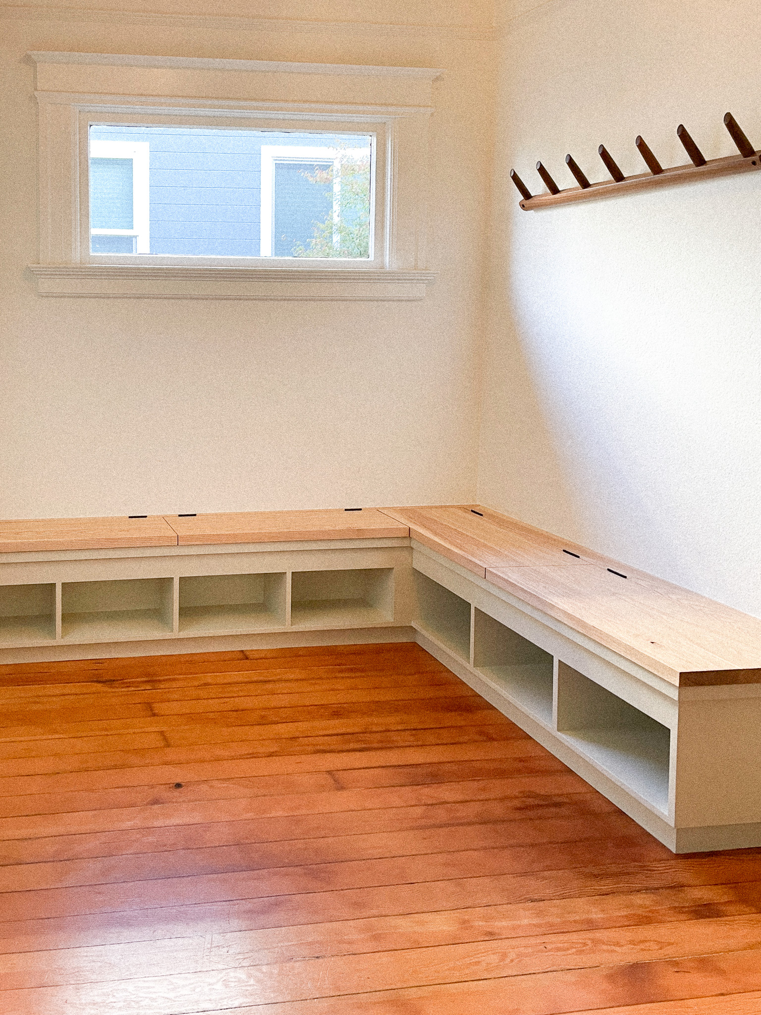 Mudroom Bench – Very similar to one we did 10 years ago, but customized to perfectly fit the new space: narrower on one wall than the other. The lid is solid ash and the rest is painted. I need to get some photos of the blue interior. Thanks to Kelly Best and McBride Construction for the excellent craftsmanship.
