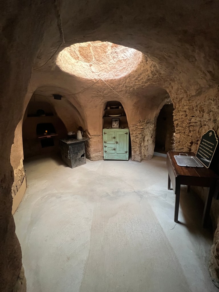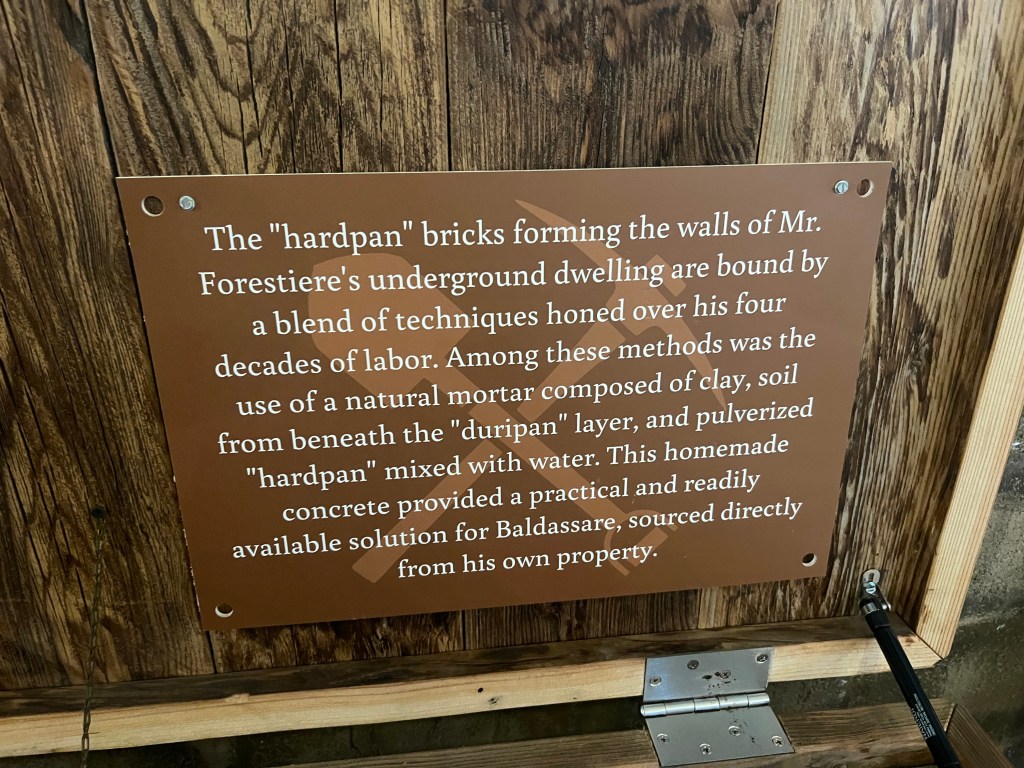 This place had been on my list for a while and I finally got a chance to check it out. One man, Baldassare Forestiere, tunneled in and under the hardpan on his property for many acres to create rooms and gardens of fruit trees and vines. The earth and the shade moderates the wide temperature swings of the Central Valley, allowing Baldassare to grow plants that normally couldn’t grow in that location. His underground rooms stayed comfortable as well. I cant write more but here it a link to the Website for more info.