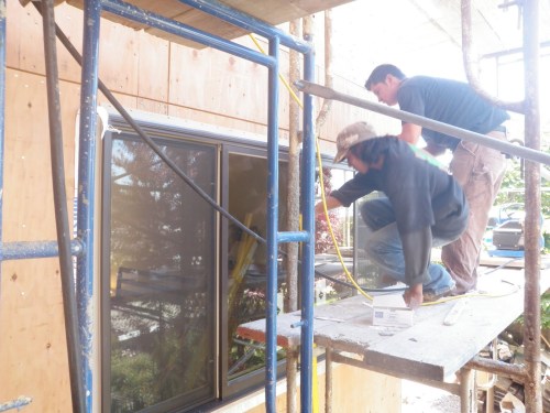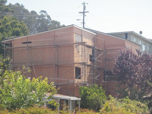Guillaume (the builder) sent me these two photos of the facelift in El Cerrito. They have passed the sheathing inspection and the new windows are going in. Tomorrow I will swing by and see how the view has changed.