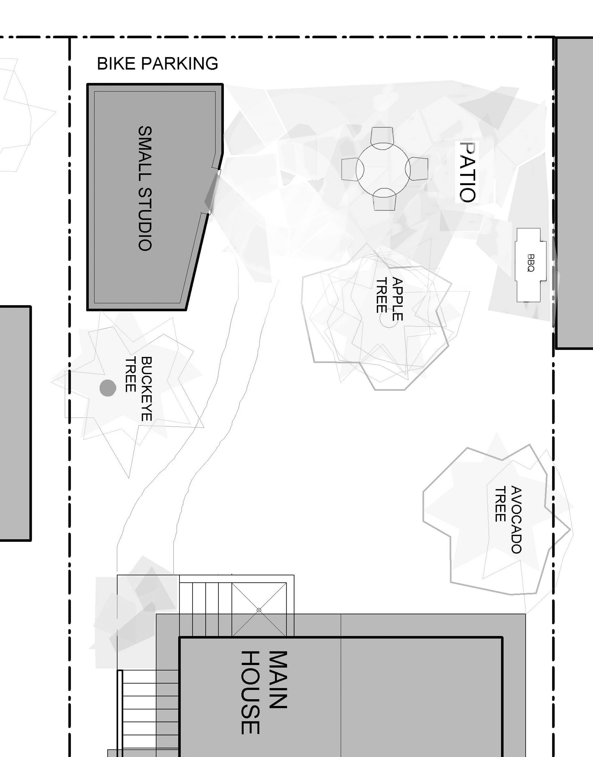 In this case, the building is an unusual shape to minimize impact on the garden and the southern sun and to maximize efficiency on the interior of the 120 SF building.