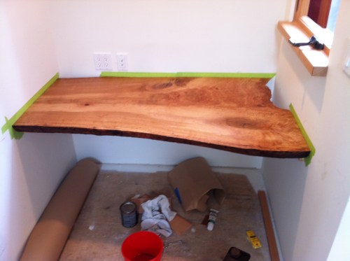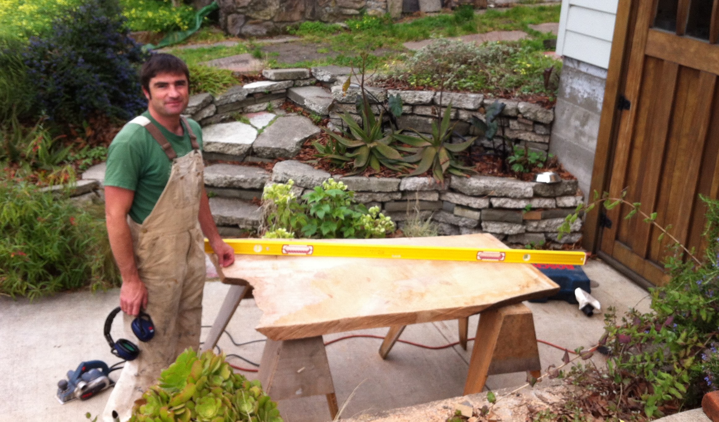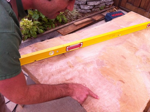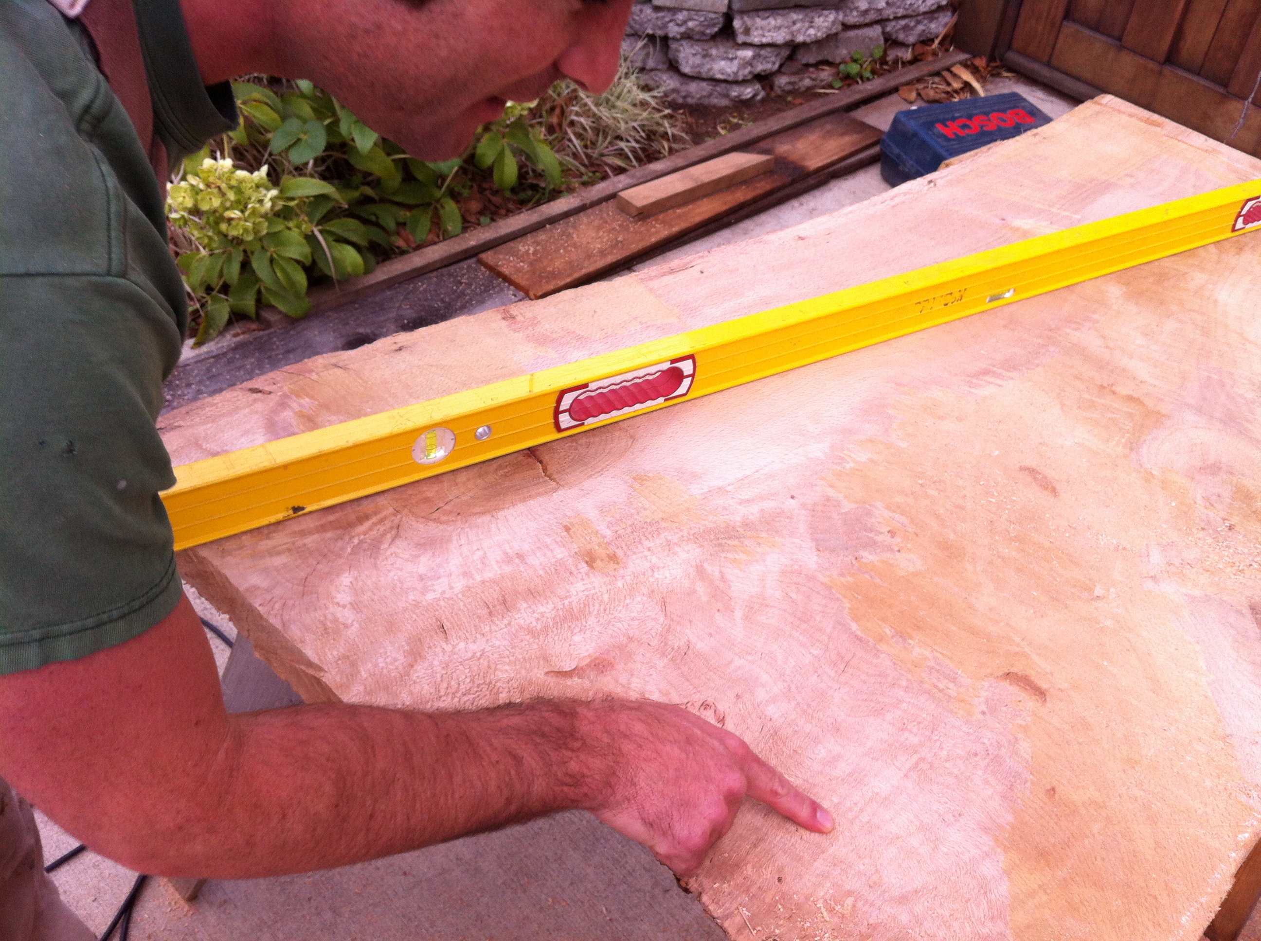 John was working in the driveway this morning making a flat surface on a big live edge slab of oak. It will be a desk top by the end of the day.