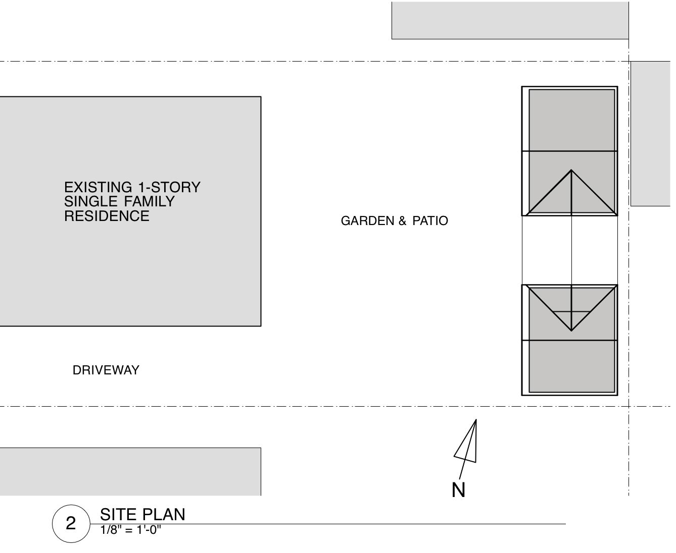 It will be very nice to have the garden and patio between the main house and the small buildings with good southern exposure. (See site plan below)