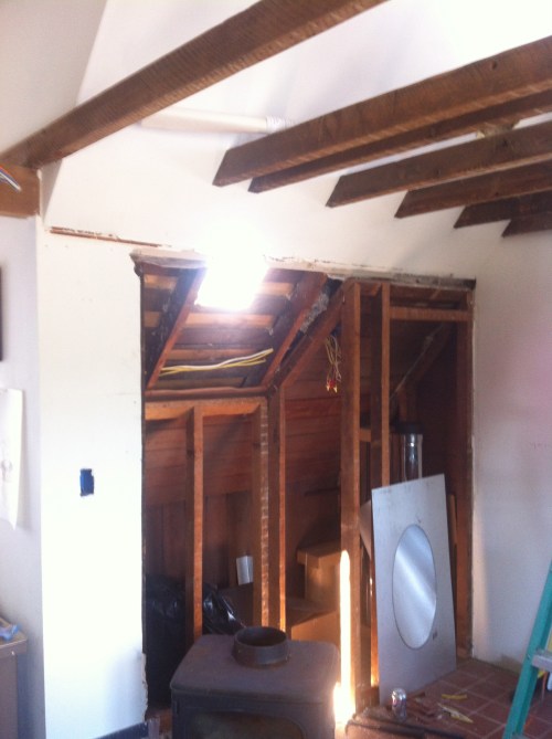 New Chimney and Hearth » Johnny Key cut the hole in the roof for the new chimney – no turning back!