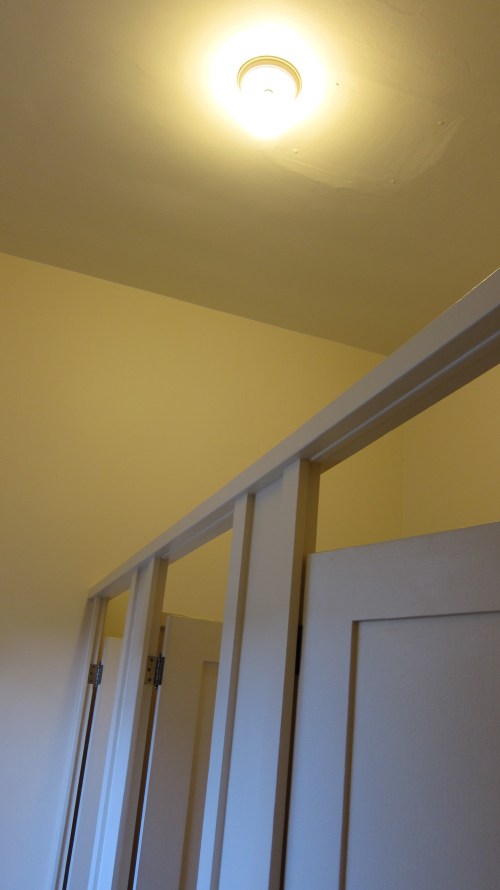 One bare lightbulb in the middle of the ceiling for light