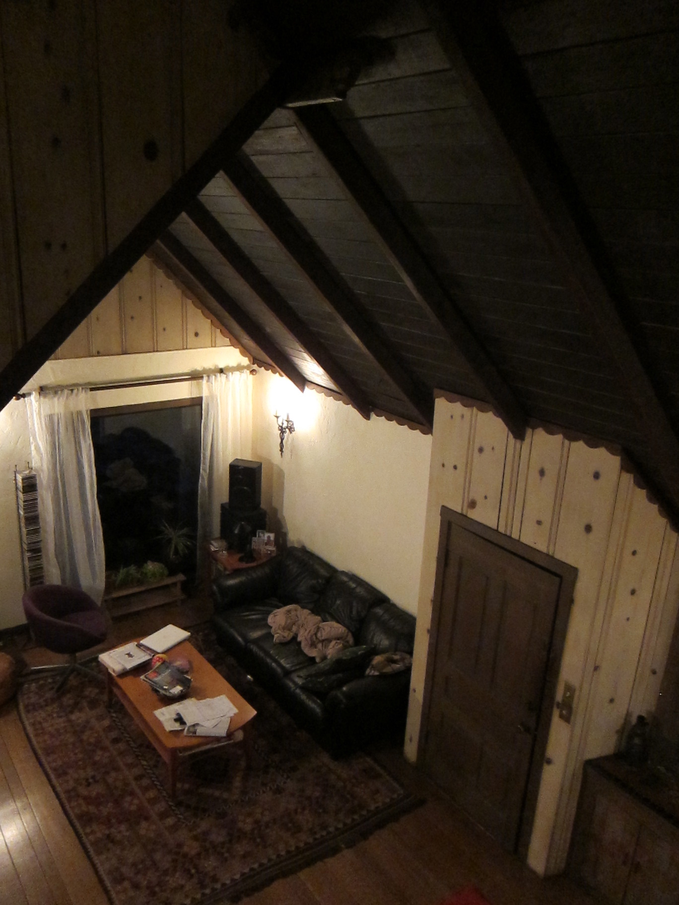 Cabin in Oakland thought to be by Julia Morgan » Living room with vaulted ceiling