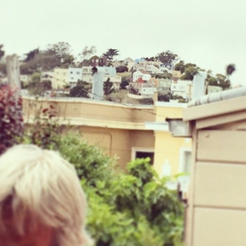 Luc, Karl, & Seamus were busy installing windows today. I noticed that the diningroom picture window has a particularly nice view of a distant hill covered in houses, framed by simple buildings in the foreground