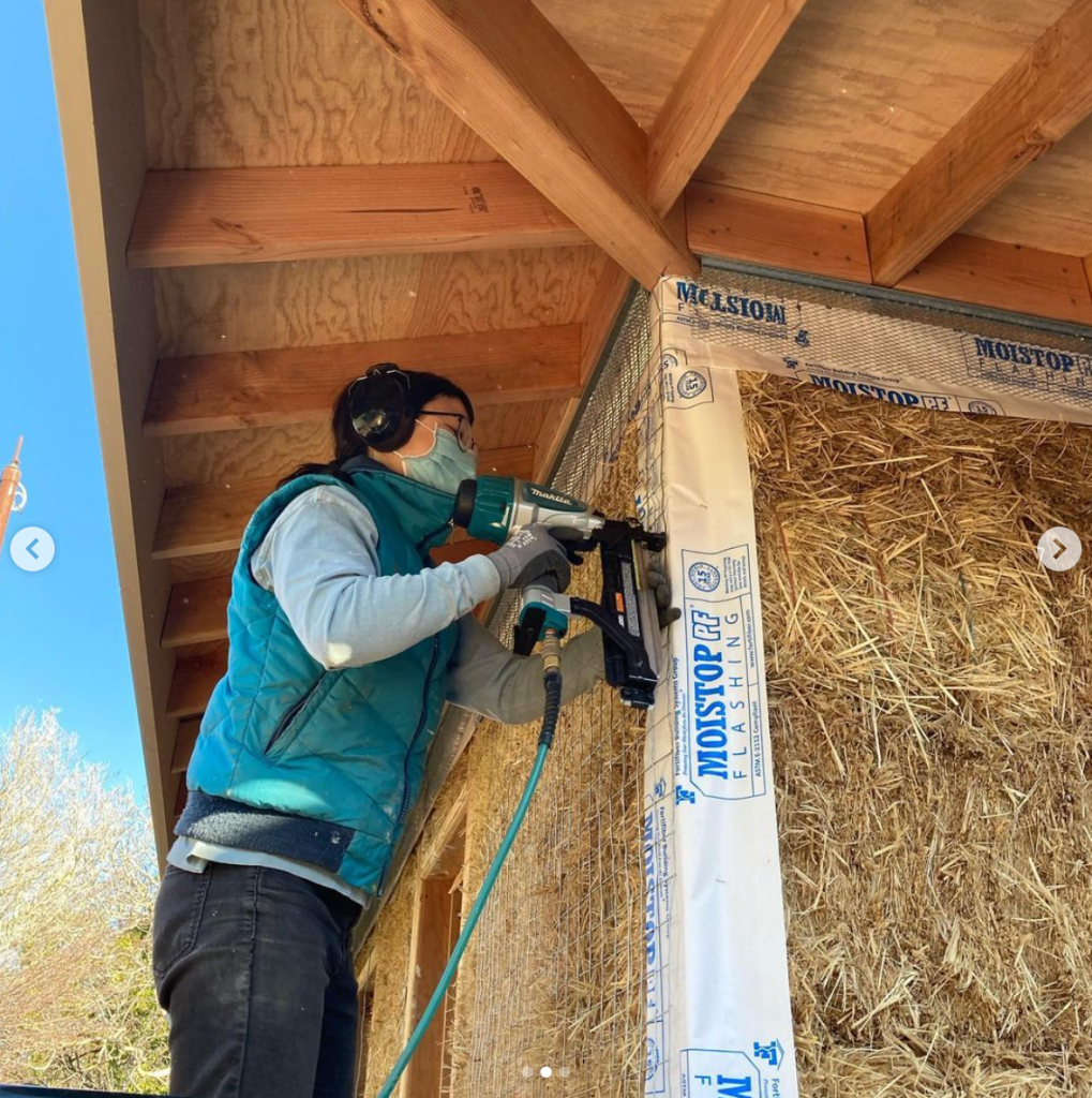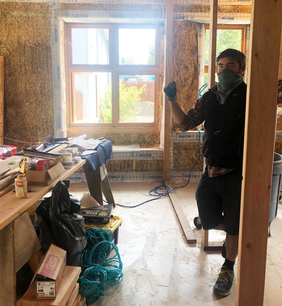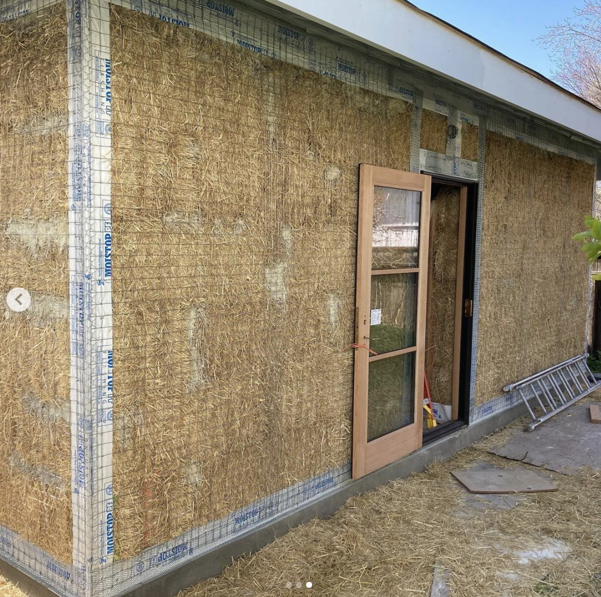 The windows are in and the mesh has been inspected. They are getting ready for the first coat of structural lime plaster on inside and outside.