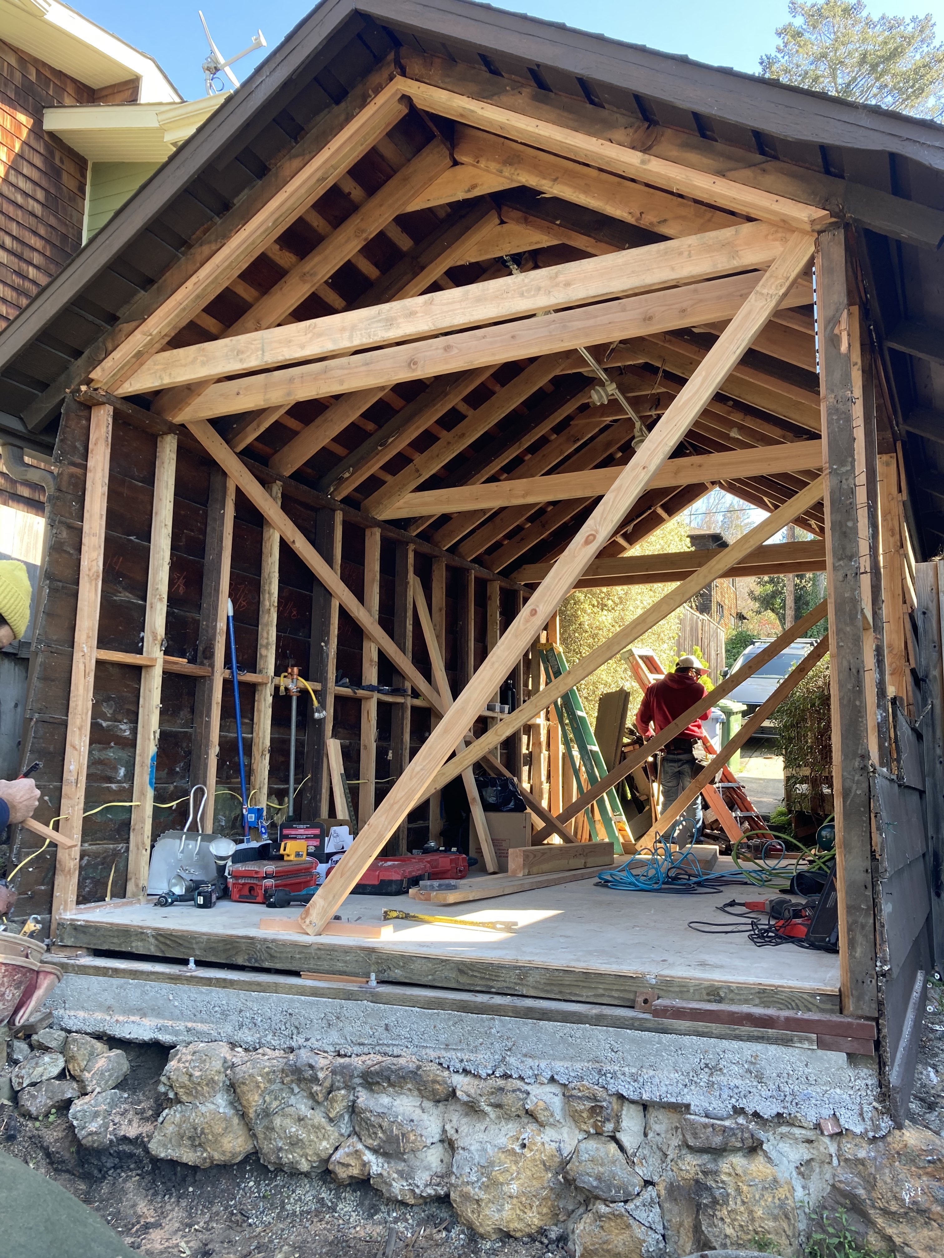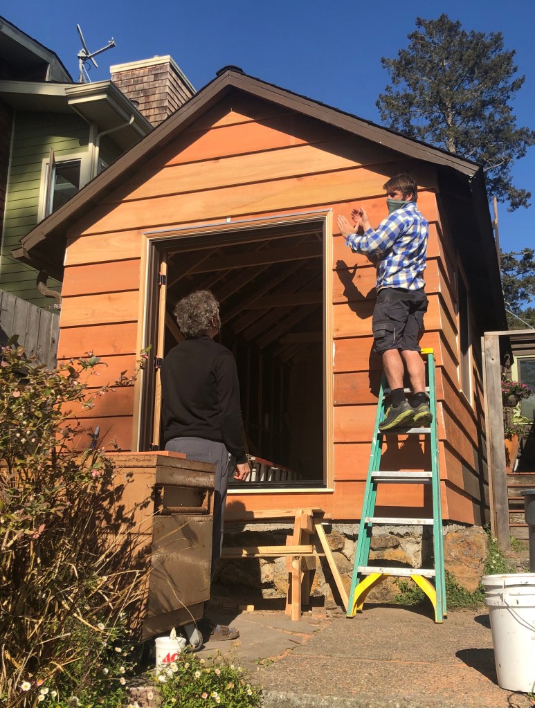 We are adding some french doors to the garden, some new siding, and making the interior nicer for guitar playing and singing. This little building sits in a very nice garden.