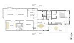 She recently commissioned deedsdesign for an addition including a master suite, expanded kitchen, and family room. Popping up the roof just a few feet allowed for a vaulted ceiling and high windows over the kitchen and an attic loft over the master. The kitchen is on the north side, so the high south windows provide southern sunshine while leaving room for enough cabinets on the north wall. (click on the thumbnails to see enlarged drawings)
