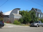 I kept the tub, but gave it a fresh coat of fireball orange on the bottom. I made a curved sink counter out of a big slab of redwood salvaged and milled by Matt Mcbride. The toilet was moved to the other side of the room. This way the view can be enjoyed while seated and there is more space for the sink. I replaced the old toilet with a dual-flush Caroma.