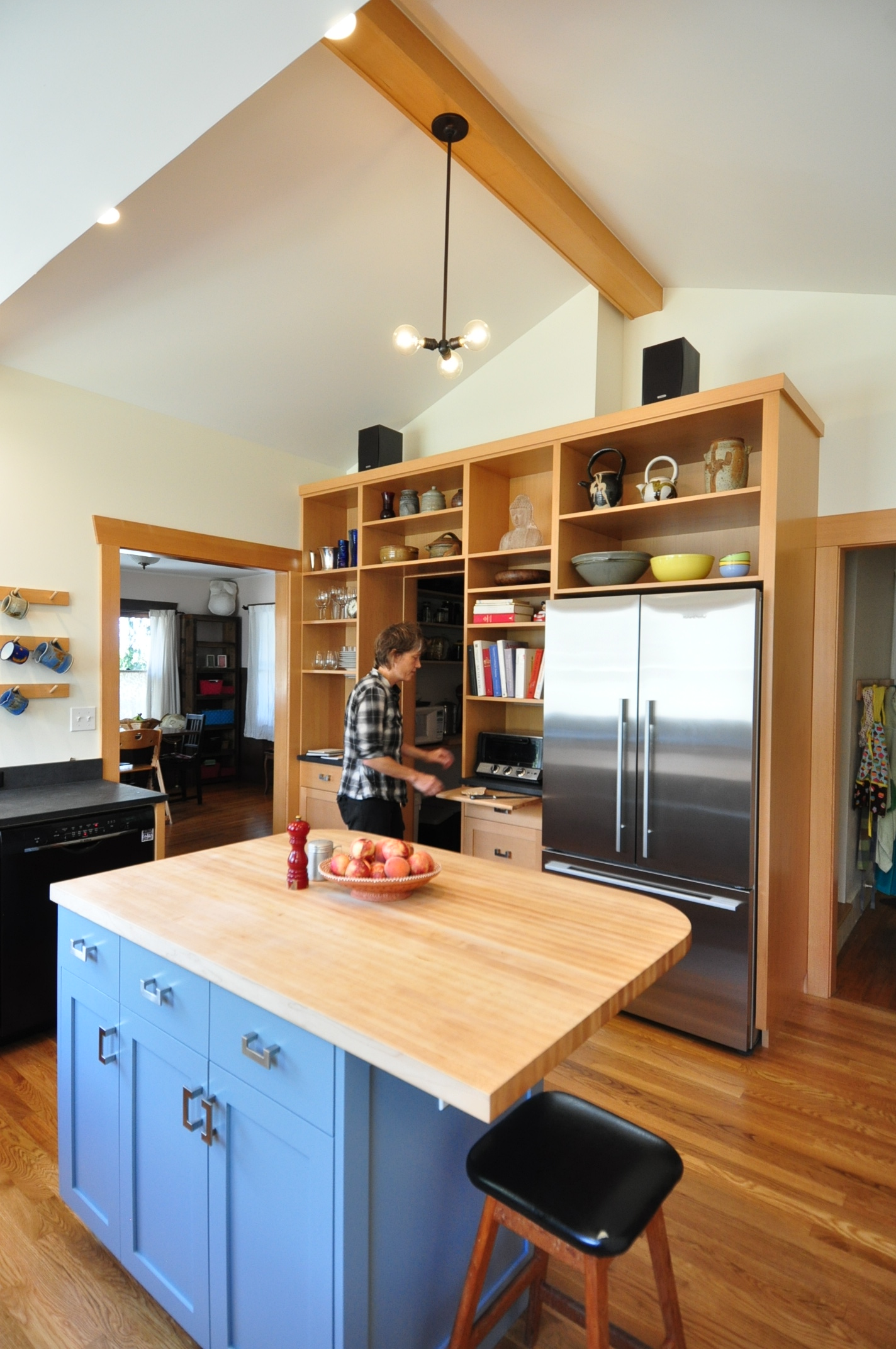This small kitchen is in the center of a small house. The house had been lovingly and artistically updated over the years, but the owners were waiting for the right time to tackle the kitchen. The budget was tight, but the owners had a lot of energy for carefully considering every detail and the contractor, Steve Coleman, was the perfect fit. He had the skill and the patience to accomplish it all.