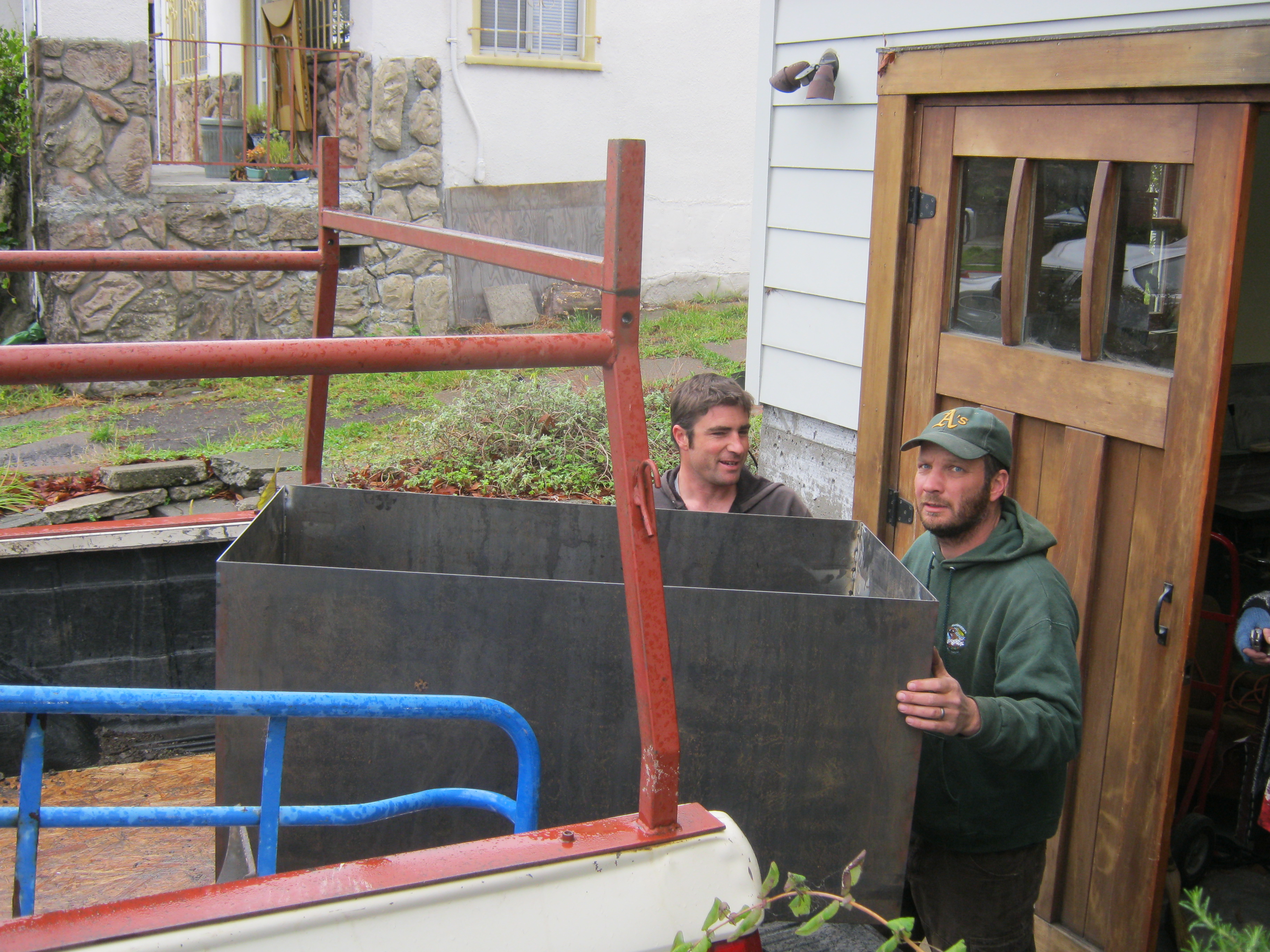 I am so excited about this bench that I can’t wait for better photos. I’ll add some later. My friends Jim and Treacy Malloy bought it for me at an auction at the YWCA. It is originally from the Oakland YWCA, designed by Julia Morgan and completed in 1915. It is perfect in my rustic kitchen. You will see this better when I add some photos not taken with my phone. (although this photo does have my cat Frodo’s tail, which is hard to beat.)