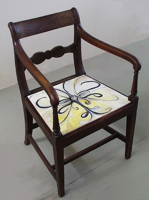 I made this painted plywood seat for my friend Matt’s family heirloom chair a while back. Just happened upon the photo while searching through my files.