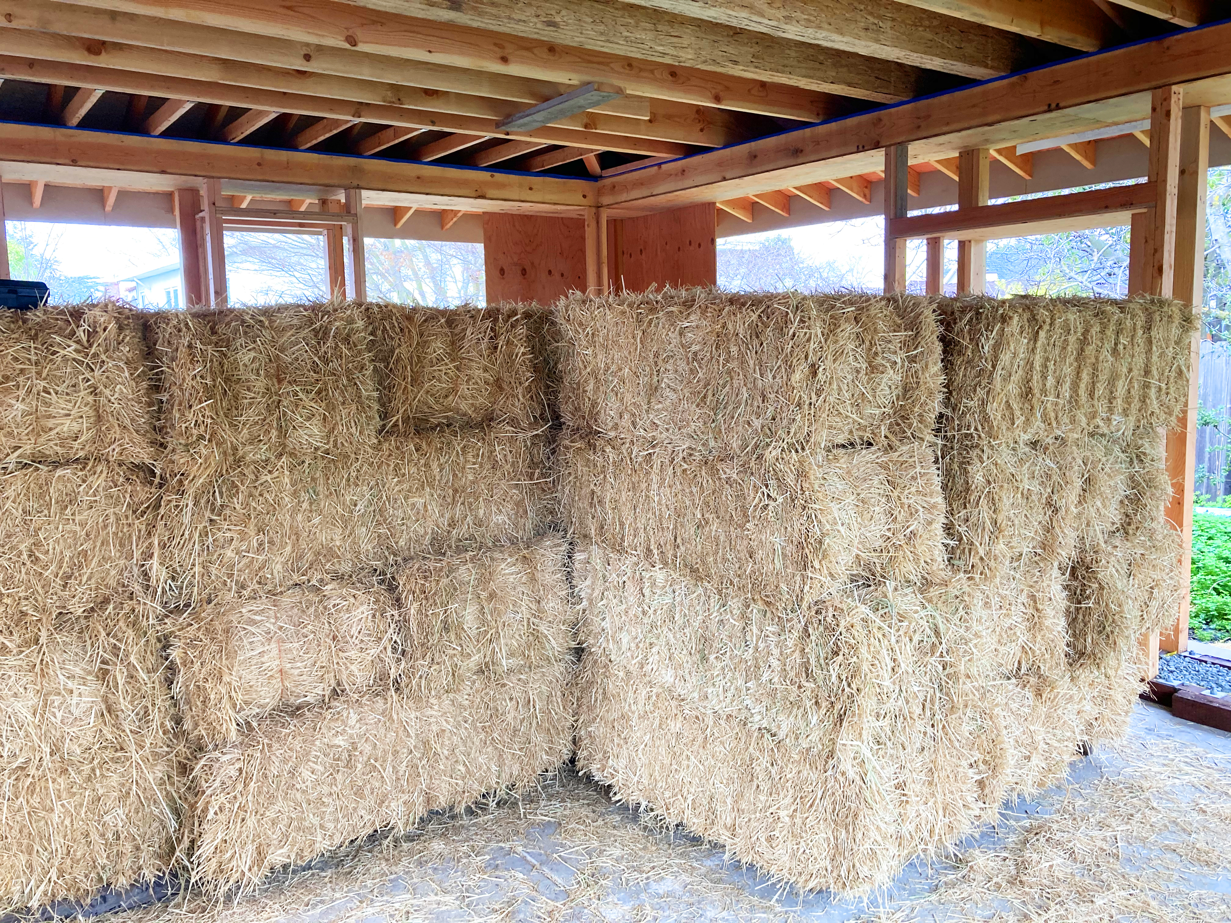 Hydraulic lime plaster is similar to cement stucco, but with lime rather than portland cement. It is more flexible and more vapor permeable than cement stucco, but it takes more skill and curing time. It also requires warmer temperatures. While making portland cement requires a lot of energy and the chemical reaction releases large quantities of CO2 into the atmosphere, Manufacturing lime takes energy, but when lime plaster carbonates (hardens) much of the CO2 released during the manufacture is reabsorbed. (From Essential Natural Plasters, Henry & Therrien) According to Strawbale Building Details (Published by CASBA – California Strawbale Building Association)The strawbales themselves sequester 26 pounds of carbon each, preventing the formation of 95 pounds of CO2)