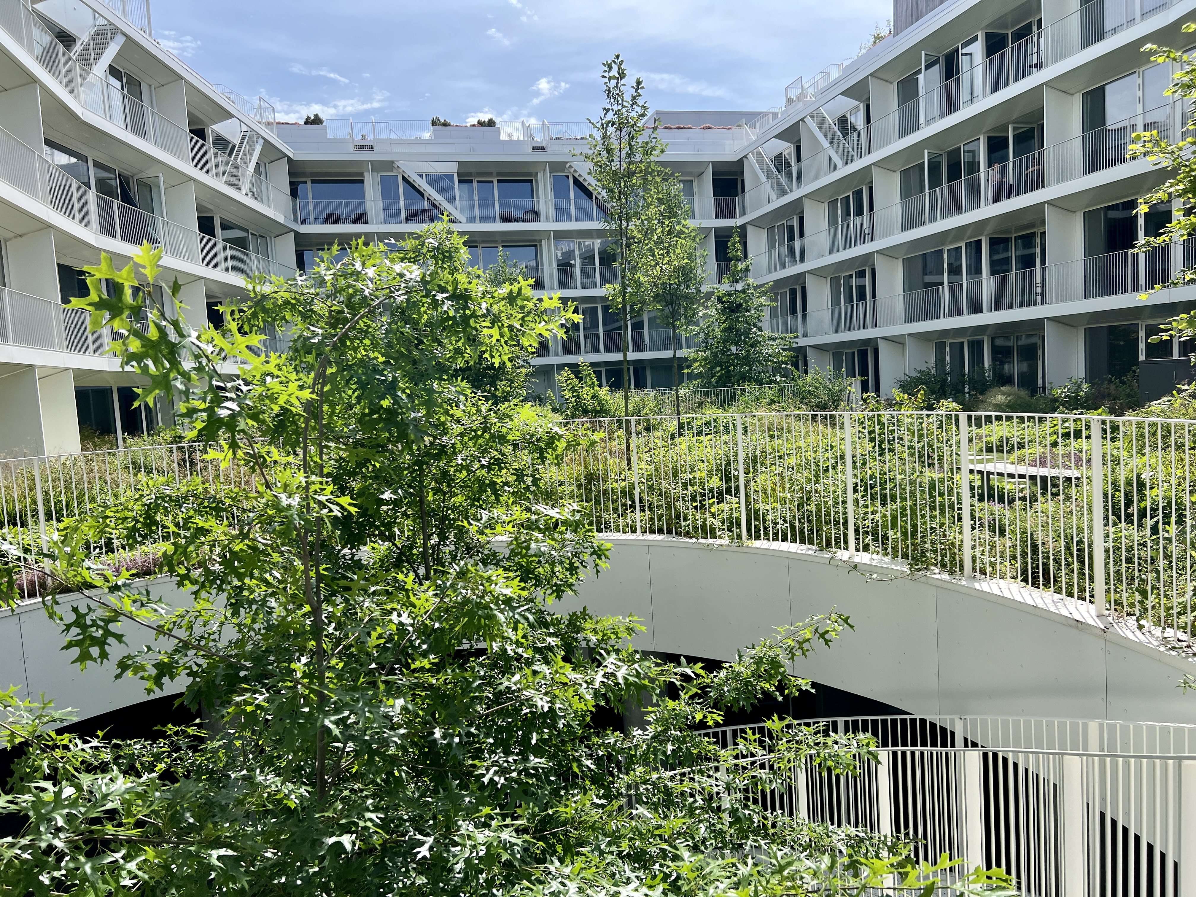 perhaps not very functional for playing or otherwise occupying, but still very nicePlayground on parking garage roof and two of the taller apartment buildings in backgroundside of parking garage and stair up to the playground with another playground at ground levelwater interfaces under construction still…but already in use. School on the waterfrontSchool on the waterfrontWe headed home on the electric ferry