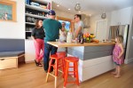 First here is the before and after first floor plan. (Roof deck remodel upstairs (plan not shown) is big enough for the whole family to sleep out under the stars and also a vegetable garden!)