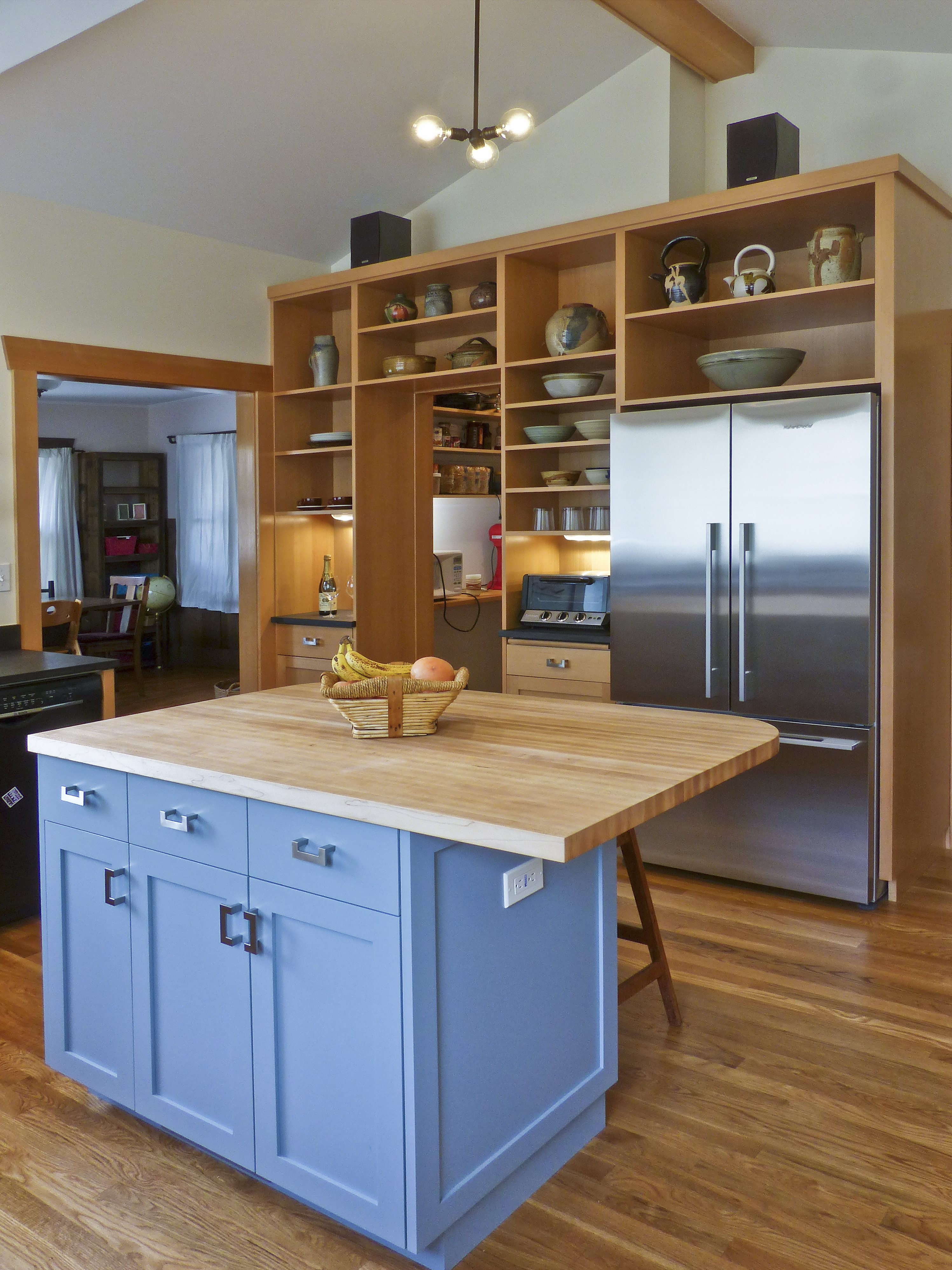 This Poets Corner remodel with small addition turned out great. (Thanks in part to the good taste of the owners and the skill of Coleman Building.) Nancy Kalter came with me to the house warming party and took some house in action shots. It was afternoon on a very sunny day.