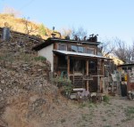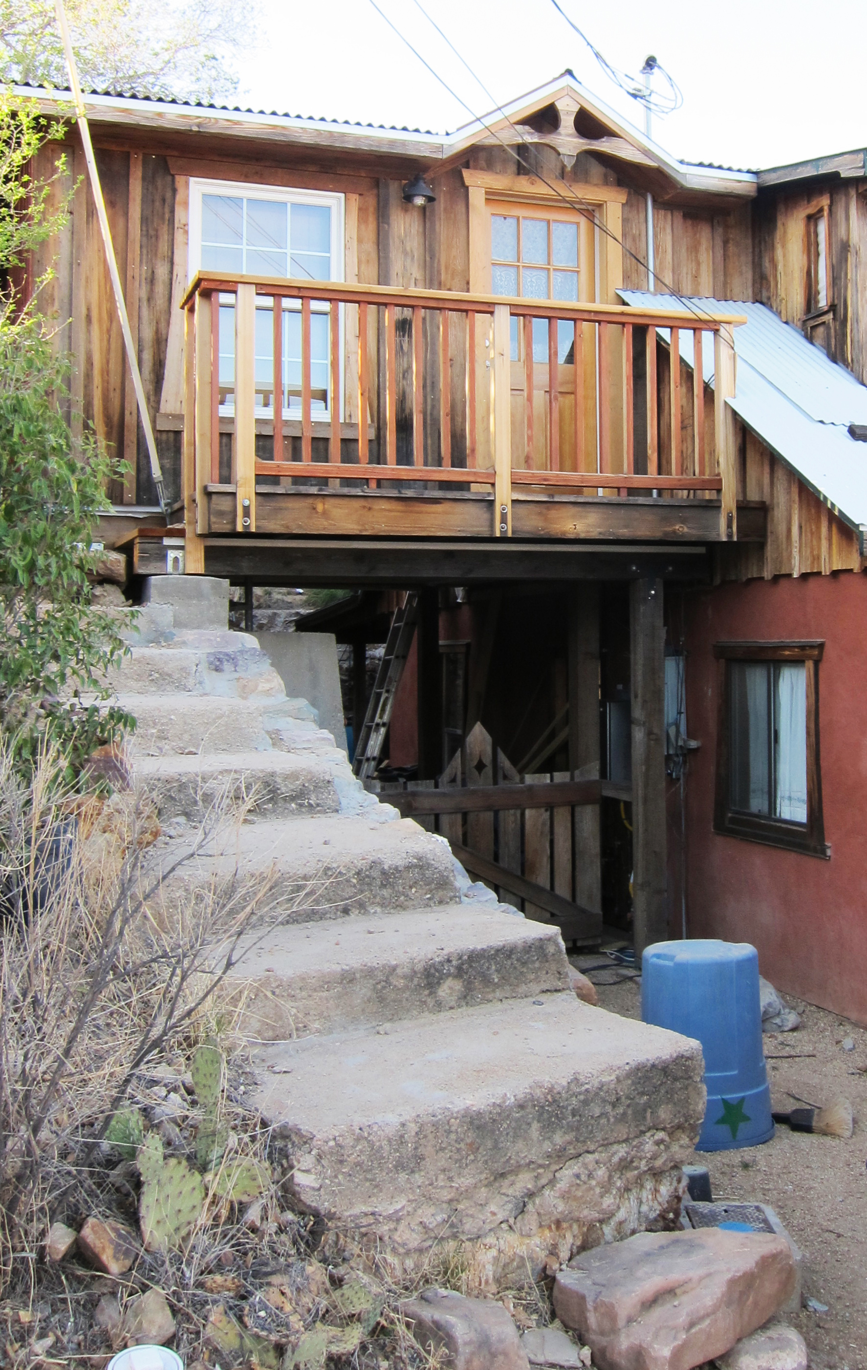 Matt made some progress on the little buildings while I was gone. He chose a warm brown integral color stucco and a red standing seam roof. You can’t see it very well in this photo, but the door to the right is an old salvaged door with a window and some nice details.