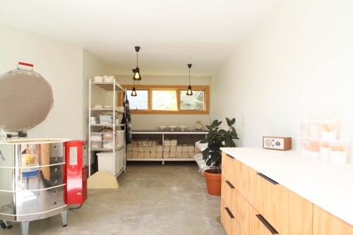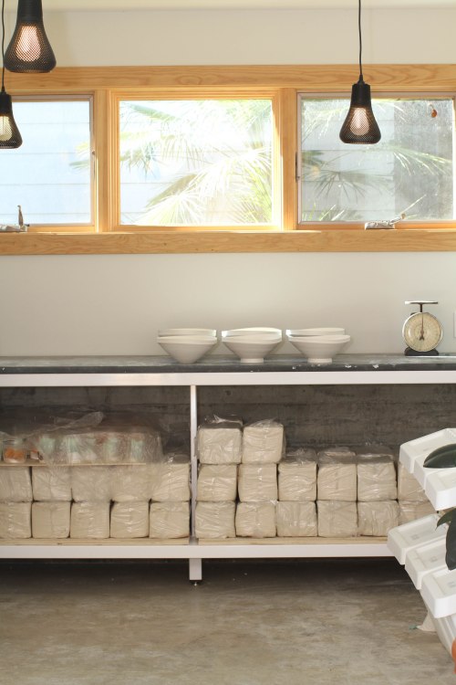 During a break in the rain today John and the backyard ceramic studio owner made some samples of charred cedar siding. Very exciting.
