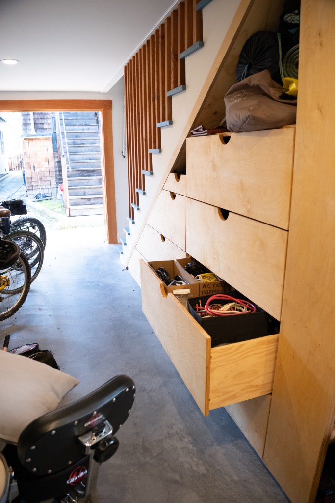 Mudroom Bench – Very similar to one we did 10 years ago, but customized to perfectly fit the new space: narrower on one wall than the other. The lid is solid ash and the rest is painted. I need to get some photos of the blue interior. Thanks to Kelly Best and McBride Construction for the excellent craftsmanship.