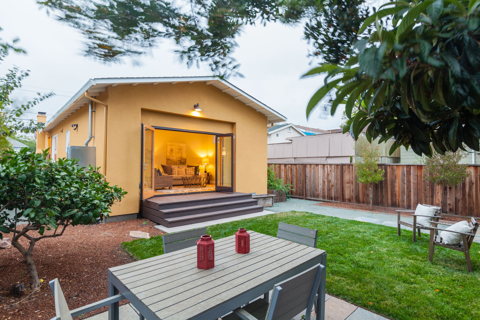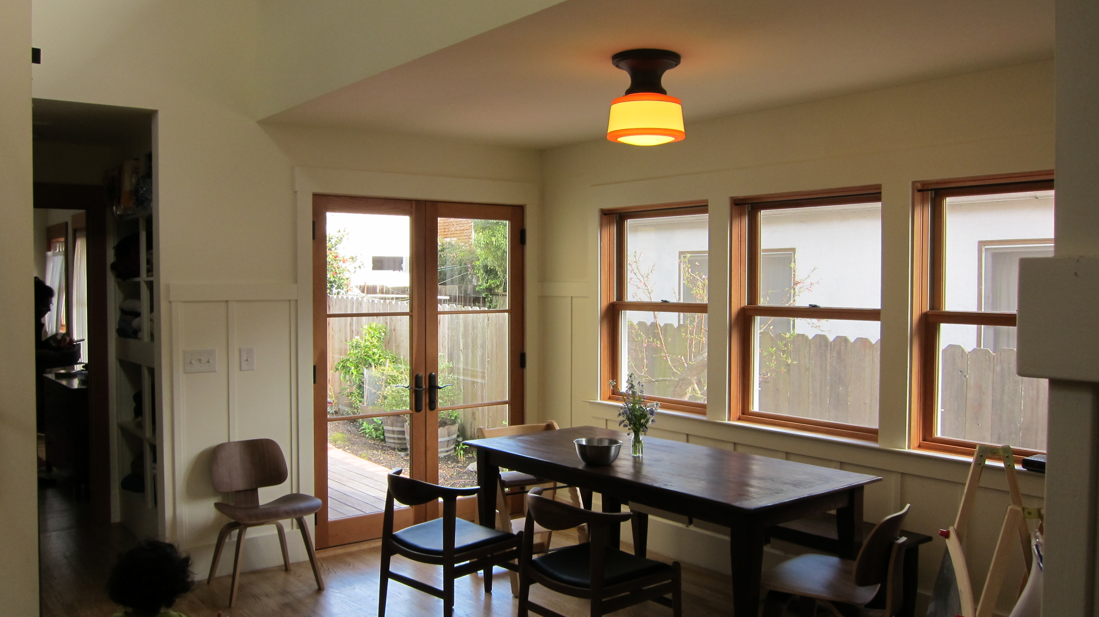 The dining room gets a lot of southern sunshine and has french doors leading to the deck.