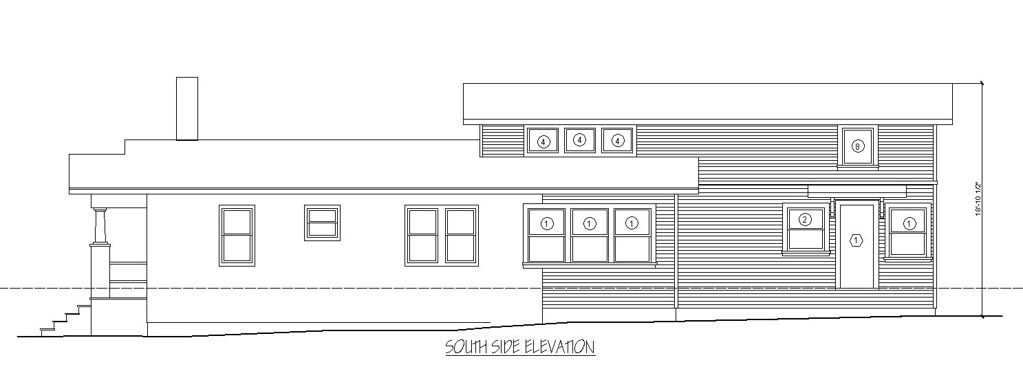 She recently commissioned deedsdesign for an addition including a master suite, expanded kitchen, and family room. Popping up the roof just a few feet allowed for a vaulted ceiling and high windows over the kitchen and an attic loft over the master. The kitchen is on the north side, so the high south windows provide southern sunshine while leaving room for enough cabinets on the north wall. (click on the thumbnails to see enlarged drawings)
