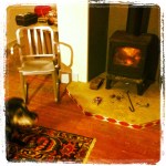 - stove reinstalled on new hearth, closet door from Omega Salvage looking like new – we just need to touch up the paint and refinish the fir floors